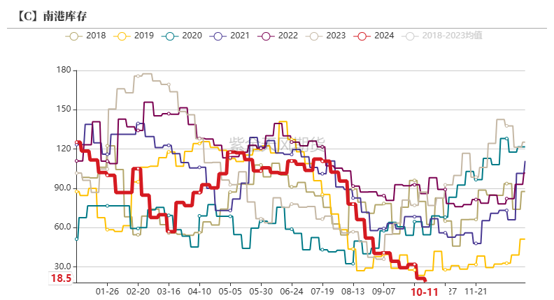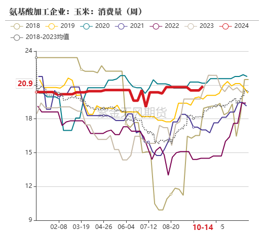 截止10月18日当周,样本饲料企业玉米平均库存26.84天,较上周增加0.77 天,环比上涨2.95%,同比上涨 6.85%。