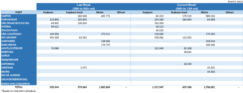 截止10月18日,据巴西Anec最新预估,巴西玉米出口预计在10月份达到622.35万吨,去年同月为802.10万吨,同比减少179.75万吨。